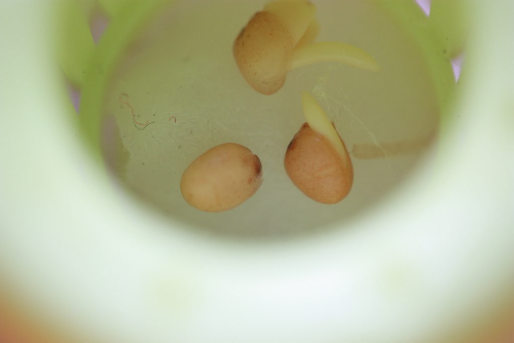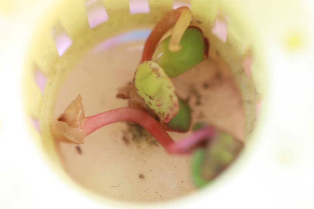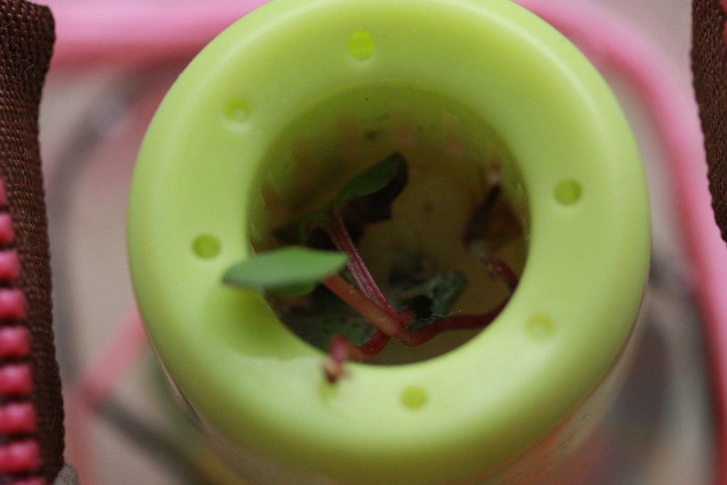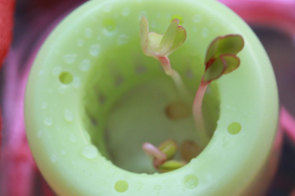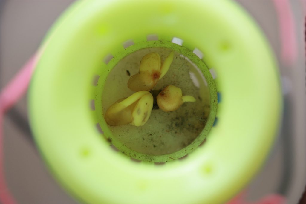 もうあかんわな。左上から右下へ 8/28,29,30,31。いずれも朝。確実にしおれてきた…カイワレスプラウト干物になりそう。