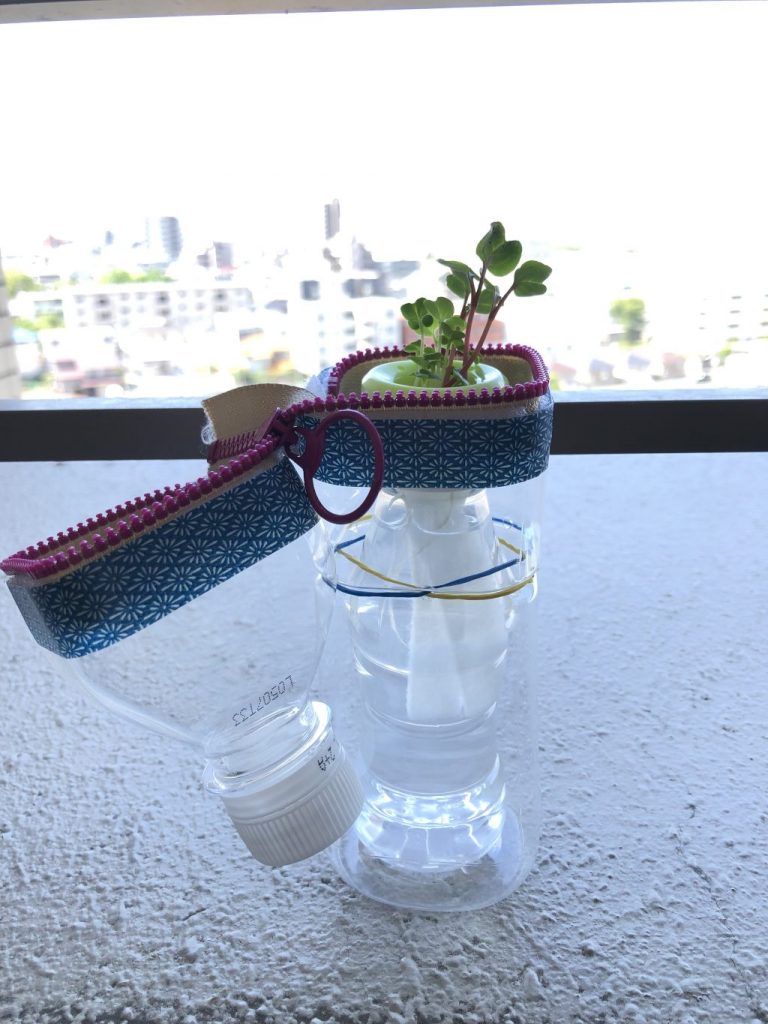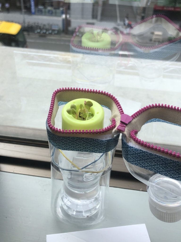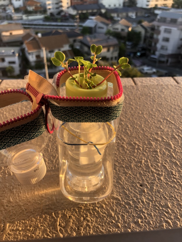 7/31水曜のワークショップでペッボトルを製作して仕込んだタネ。金曜日には芽が出ました。