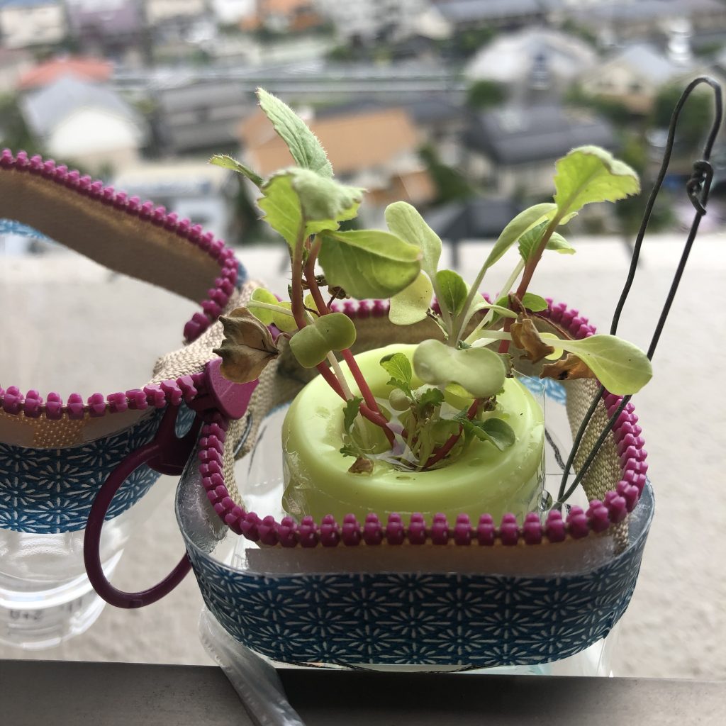 実は週末に、ペットのカイワレくんを家内に自慢しようと、職場オフィスの窓辺から自宅に持って帰った。チャックのついたペット鉢は移動には大変便利。通勤リュックに突っ込んで持って帰ったが、存在忘れてうっかりカバンを横にしてしまい、さすがに水漏れしてしまった(T_T)。